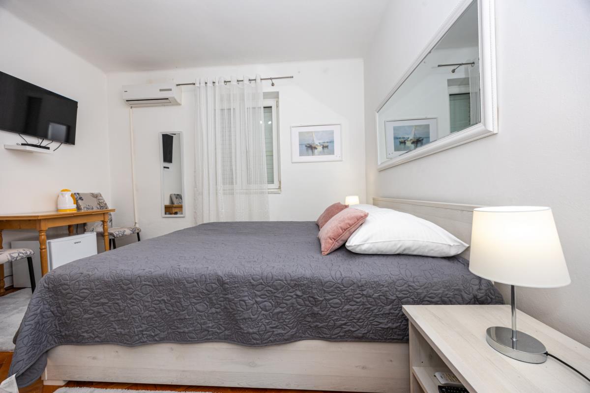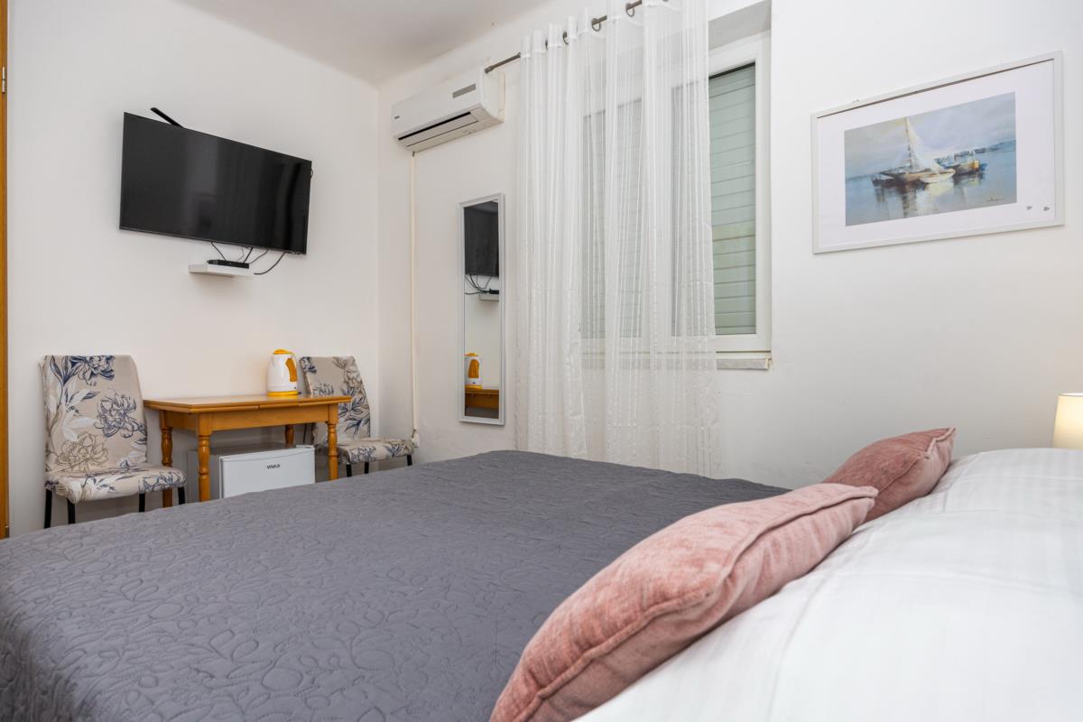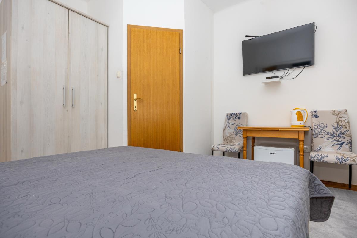 Double room No. 3 is located on the first floor. The room has a private bathroom, air conditioning, fridge and LCD TV. The room has a double bed, a wardrobe and a table with chairs. The room has no sea view. The room is available free wireless internet WI-FI. Minimum days stay from 10.07. to 20.08. is 7 nights. Minimum days stay in other periods is 5 nights.